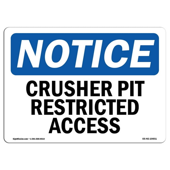OSHA Notice Sign - Crusher Pit Restricted Access | Aluminum Sign | Protect Your Business, Construction Site, Warehouse & Shop Area | Made in the USASignMission 10 x 14 in OSHA Notice Sign Crusher Pit Restricted AccessOSHA Notice Sign Crusher Pit Restricted Access Plastic Sign Protect Your Business Construction Site Warehouse Shop Area Made in the USAOSHA Notice Sign Crusher Pit Restricted Access Decal Protect Your Business Construction Site Warehouse Made in the USAOSHA Notice Sign Crusher Pit Restricted Access Plastic Sign Protect Your Business Construction Site Warehouse Shop Area Made in the USAOSHA Notice Signs Crusher Pit Restricted Access Decal Protect Your Business Construction Site Warehouse Made in the USAOSHA Notice Sign Crusher Pit Restricted Access Decal Protect Your Business Construction Site Warehouse Made in the USASignMission 12 x 18 in OSHA Notice Sign Crusher Pit Restricted AccessOSHA Notice Sign Crusher Pit Restricted Access Plastic Sign Protect Your Business Construction Site Warehouse Shop Area Made in the USAOSHA Notice Sign Crusher Pit Restricted Access Plastic Sign Protect Your Business Construction Site Warehouse Shop Area Made in the USAOSHA Notice Signs Crusher Pit Restricted Access Decal Protect Your Business Construction Site Warehouse Made in the USAOSHA Notice Signs Crusher Pit Restricted Access Sign Extremely Durable Made USA Signs Heavy Duty Vinyl label Decal Protect Construction Site WarehousSignMission 7 x 10 in OSHA Notice Sign Crusher Pit Restricted Access
