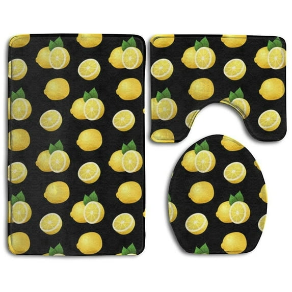 GOHAO Lemon 3 Piece Bathroom Rugs Set Bath Rug Contour Mat and Toilet Lid Cover
