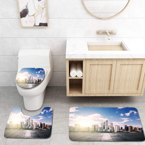 Hero image 0 of PUDMAD Empty Floor Modern Buildings 3 Piece Bathroom Rugs Set Bath Rug Contour Mat and Toilet Lid Cover, 0 of 2
