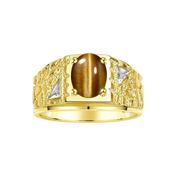 Hero image 0 of RYLOS Men's Rings Yellow Gold Plated Silver Designer Nugget Ring Oval 9X7MM Gemstone & Diamonds Tiger Eye Birthstone Rings For Man Size 10, 0 of 7