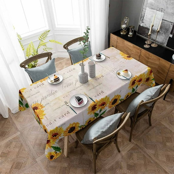 Sunflower Tablecloth Waterproof Tablecloths, Yellow Floral Farmhouse Retro Rustic Flowers Table Cloth Dining Table Cover Cloth for Kitchen Party Outdoor Tabletop Decor,Rectangle Tablecloth 60x102 Inch