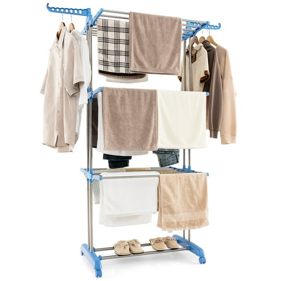 Hero image 0 of Topbuy 4-Tier Foldable Clothes Drying Rack, Oversized Drying Rack w/ Lockable Wheels & Rust-proof Metal Frame, 0 of 9