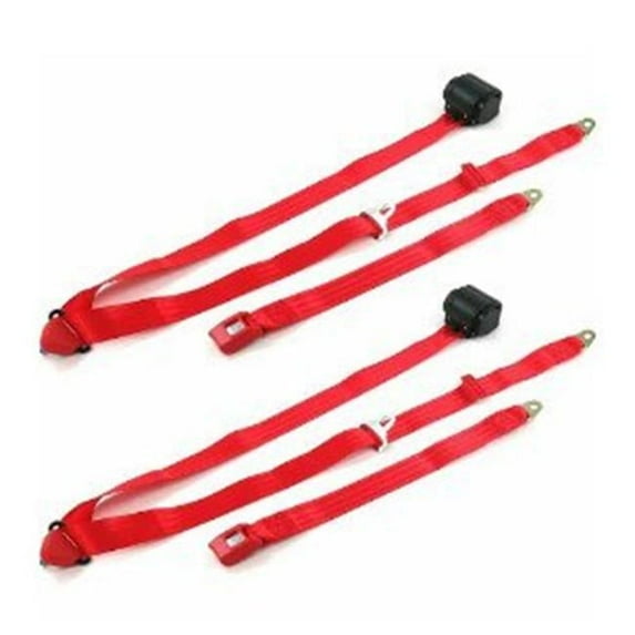 Standard 3 Point Red Retractable Bucket Seat Belt Kit with Bracketry & 2 Belts for 1962-1965 Chevy II