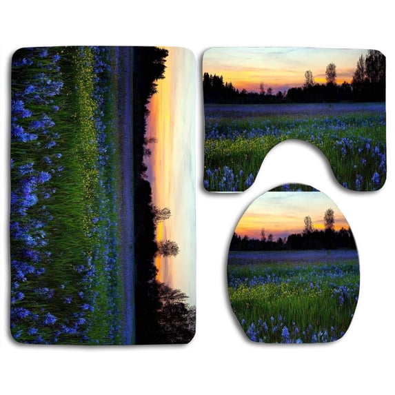 Hero image 0 of PUDMAD Beautiful Lavender Flowers Field 3 Piece Bathroom Rugs Set Bath Rug Contour Mat and Toilet Lid Cover, 0 of 2