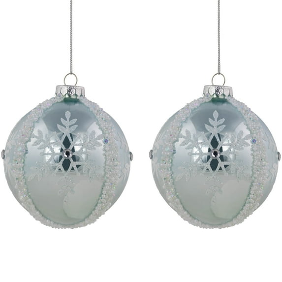 Hero image 0 of Northlight Set of 2 Sky Blue Glittered and Beaded Snowflake Glass Christmas Ball Ornaments 4", 0 of 4