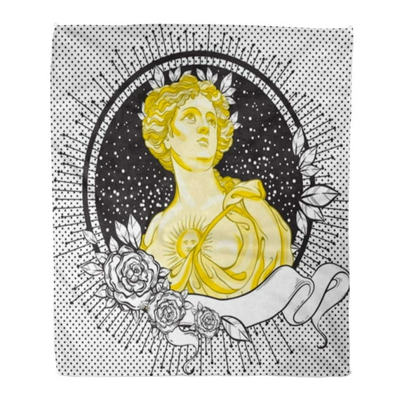 KDAGR Throw Blanket 58x80 Inches Dark Romance Victorian Cameo Beautiful Greek Lady on Vintage Black Decorated Warm Flannel Soft Blanket for Couch Sofa Bed