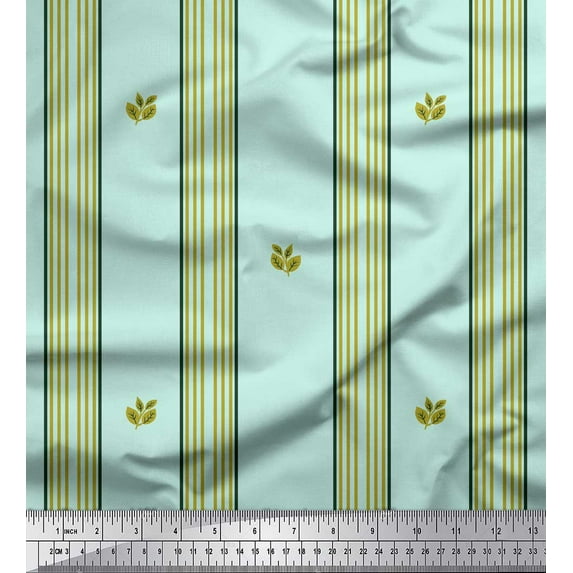 Soimoi Green polyester Crepe Fabric Leaves & Stripe Decor Fabric Printed Yard 52 Inch Wide