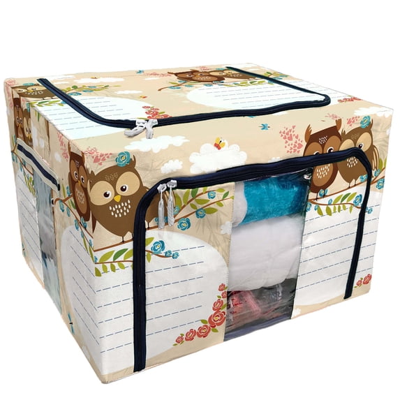 Hero image 0 of PKQWTM Lined Space Cute Owls Spring Birds Love Bright Flowers Storage Bag Clear Window Storage Bins Boxes Large Capacity Foldable Stackable Organizer With Steel Metal Frame For Clothes,Closets, 0 of 3