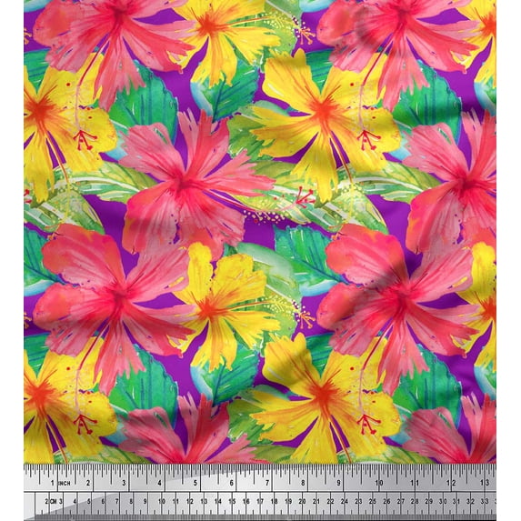 Hero image 0 of Soimoi Purple Cotton Jersey Fabric Leaves & Floral Decor Fabric Printed Yard 64 Inch Wide, 0 of 3