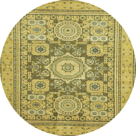 Ahgly Company Indoor Round Abstract Golden Brown Yellow Abstract Area Rugs, 4' Round