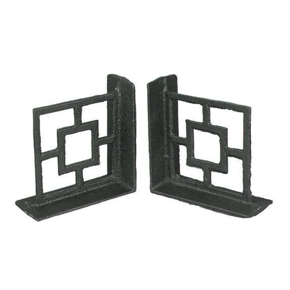 Hero image 0 of Zeckos Black Cast Iron Geometric Bookends Home Decor Set of 2, 0 of 5