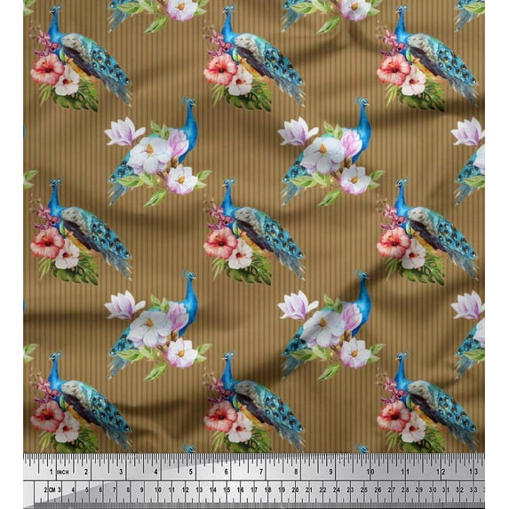 Hero image 0 of Soimoi Brown Velvet Fabric Stripe,Pink Floral & Peacock Bird Print Sewing Fabric BTY 58 Inch Wide, 0 of 1