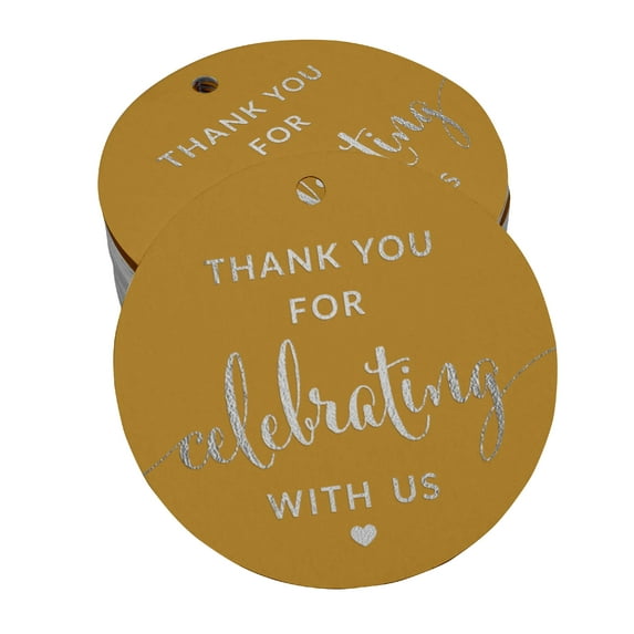 Inkdotpot Silver Foil Paper Hang Tags Thank You Celebrating With Us Bridal Shower-Baby Shower-Retirement-Wedding-Birthday Favor Tags 50 Pieces