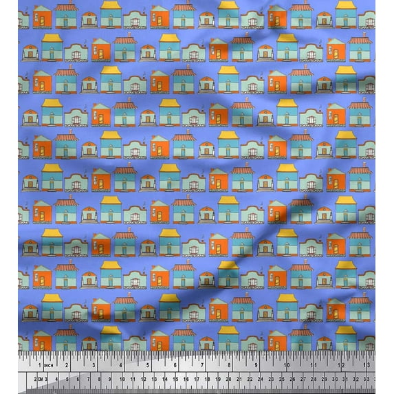 Hero image 0 of Soimoi Blue Heavy Satin Fabric House Architectural Print Fabric by the Yard 54 Inch Wide, 0 of 1