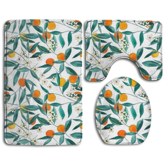 Hero image 0 of PUDMAD Orange Summer 3 Piece Bathroom Rugs Set Bath Rug Contour Mat and Toilet Lid Cover, 0 of 2