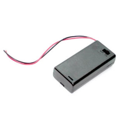 01928 - BATTERY HOLDER AAX2 WITH SWITCH WIRE 15CM AND COVER PLASTIC BLK