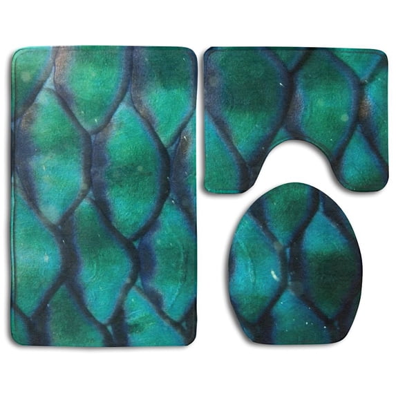 Hero image 0 of PUDMAD Green Fish Scales 3 Piece Bathroom Rugs Set Bath Rug Contour Mat and Toilet Lid Cover, 0 of 2