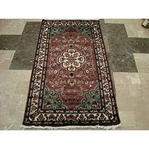Ahmedani Linen Classic Flower Ivory Touch Rectangle Area Rug Home Decor Wool Silk Hand Knotted Indoor Carpet (5 x 3) Foot