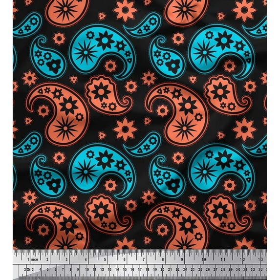 Soimoi Black Cotton Cambric Fabric Floral & Paisley Fabric Prints By Yard 42 Inch Wide