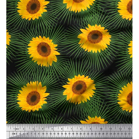 Hero image 0 of Soimoi Modal Satin Fabric Leaves & Sunflower Floral Print Fabric by The Yard 42 Inch Wide, 0 of 3