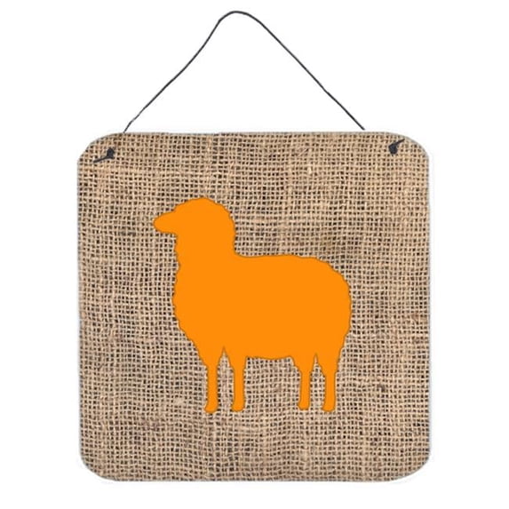 6 x 6 in. Sheep Burlap and Orange Aluminium Metal Wall Or Door Hanging Prints