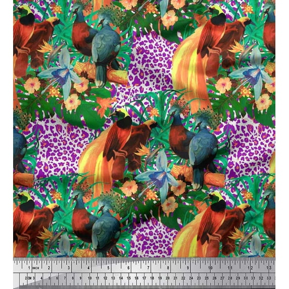 Hero image 0 of Soimoi Cotton Poplin Fabric Tropical Leaves,Crowned Pigeon & Bird Of Paradise Bird Fabric Prints By Yard 56 Inch Wide, 0 of 1