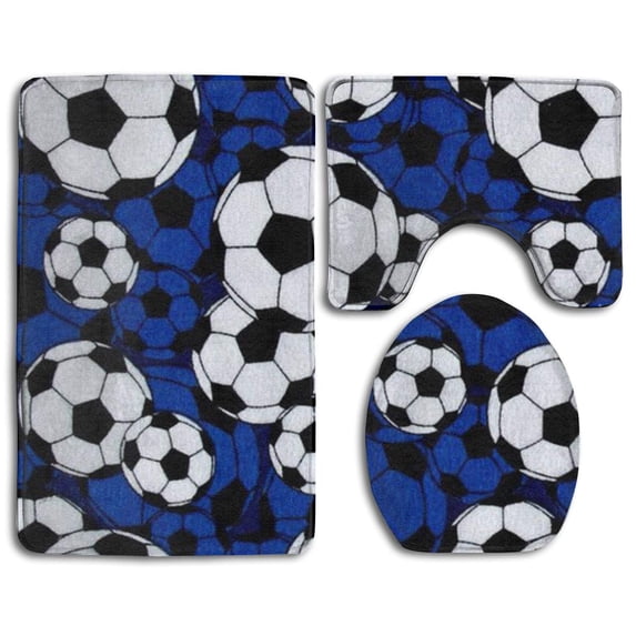 Hero image 0 of PUDMAD Soccer Balls 3 Piece Bathroom Rugs Set Bath Rug Contour Mat and Toilet Lid Cover, 0 of 2