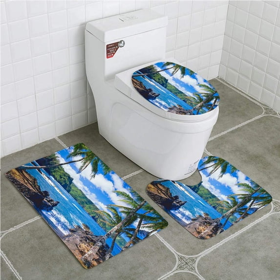 Hero image 0 of GOHAO Maui Coastline Hawaii Islands 3 Piece Bathroom Rugs Set Bath Rug Contour Mat and Toilet Lid Cover, 0 of 2