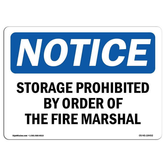 SignMission OS-NS-A-1014-L-18492 10 x 14 in. OSHA Notice Sign - Storage Prohibited by Order of the Fire MarshalSignMission 10 x 14 in OSHA Notice Sign Storage Prohibited by Order of the Fire MarshalOSHA Notice Sign Storage Prohibited By Order Of The Fire Marshal Decal Protect Your Business Construction Site Made in the USASignMission 12 x 18 in OSHA Notice Sign Storage Prohibited by Order of the Fire MarshalOSHA Notice Signs Storage Prohibited By Order Of The Fire Marshal Decal Protect Your Business Work Site Made in the USAOSHA Notice Sign Storage Prohibited By Order Of The Fire Marshal Decal Protect Your Business Construction Site Made in the USAOSHA Notice Sign Storage Prohibited By Order Of The Fire Marshal Plastic Sign Protect Your Business Work Site Warehouse Made in the USAOSHA Notice Sign Storage Prohibited By Order Of The Fire Marshal Plastic Sign Protect Your Business Work Site Warehouse Made in the USAOSHA Notice Signs Storage Prohibited Order Fire Marshal Sign Extremely Durable Made USA Signs Heavy Duty Vinyl label Protect Warehouse BusinessOSHA Notice Signs Storage Prohibited By Order Of The Fire Marshal Decal Protect Your Business Work Site Made in the USAOSHA Notice Sign Storage Prohibited By Order Of The Fire Marshal Plastic Sign Protect Your Business Work Site Warehouse Made in the USAOSHA Notice Sign Storage Prohibited By Order Of The Fire Marshal Plastic Sign Protect Your Business Work Site Warehouse Made in the USAOSHA Notice Sign Storage Prohibited By Order Of The Fire Marshal Decal Protect Your Business Construction Site Made in the USASignMission Notice Storage Prohibited by Order of The Fire Marshal OSHA Aluminum Sign