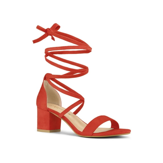 Hero image 0 of BLISSFUL STEP Women's Open Toe Lace up Sandals Mid Block Heels Sandals Orange 10.5, 0 of 7