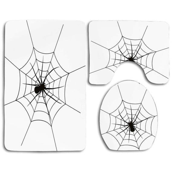 Hero image 0 of PUDMAD Spider Web Black Spooky Spider Weighs on a Web Creepy Crawly Organism Tangled Monochrome 3 Piece Bathroom Rugs Set Bath Rug Contour Mat and Toilet Lid Cover, 0 of 2