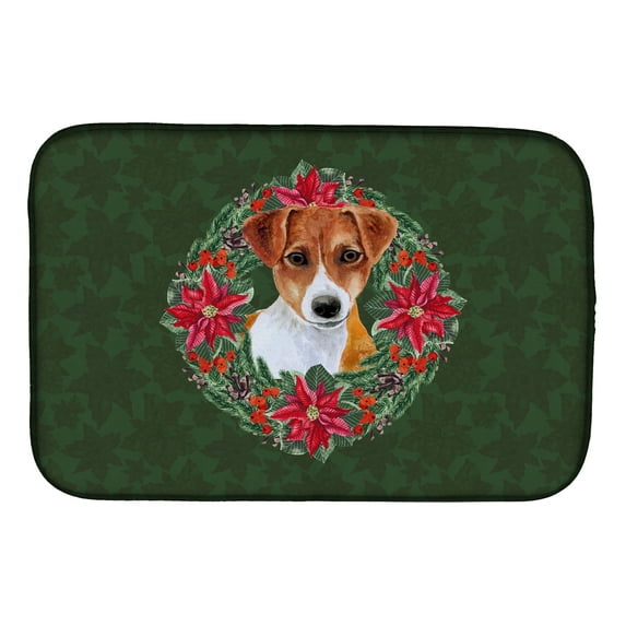 Hero image 0 of Jack Russell Terrier Poinsetta Wreath Dish Drying Mat, 0 of 7