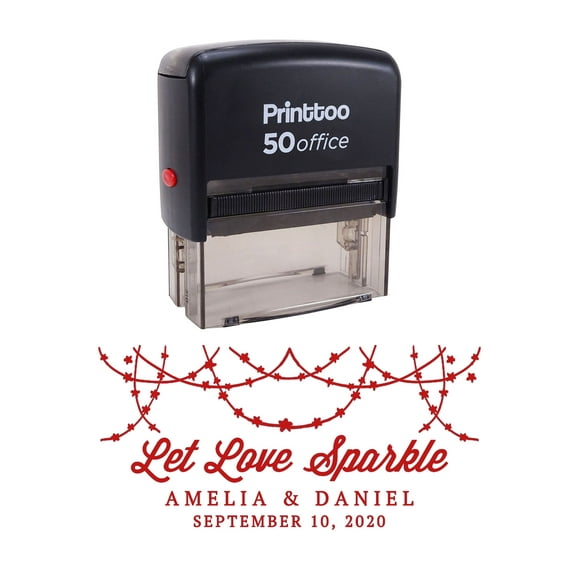 Printtoo Personalized Red Self Inking Let Love Sparkle Custom Wedding Favor Rubber Stamper-68 x 30 mm