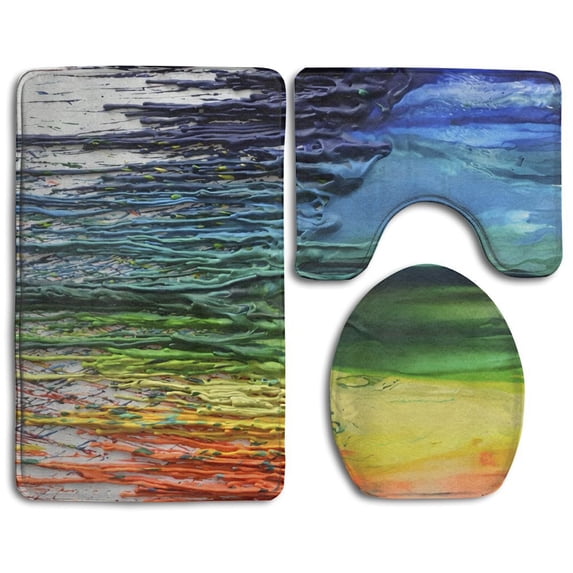 Hero image 0 of PUDMAD Art Lines Rainbow 3 Piece Bathroom Rugs Set Bath Rug Contour Mat and Toilet Lid Cover, 0 of 2