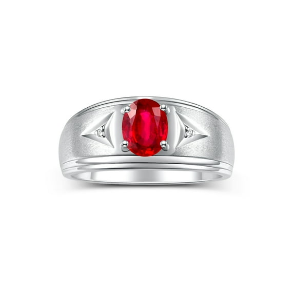 Hero image 0 of RYLOS Men's Rings 14K White Gold Classic 8X6MM Oval Gemstone & Diamond Designer Ring Ruby July Birthstone Rings For Man Gold Rings Size 13, 0 of 7