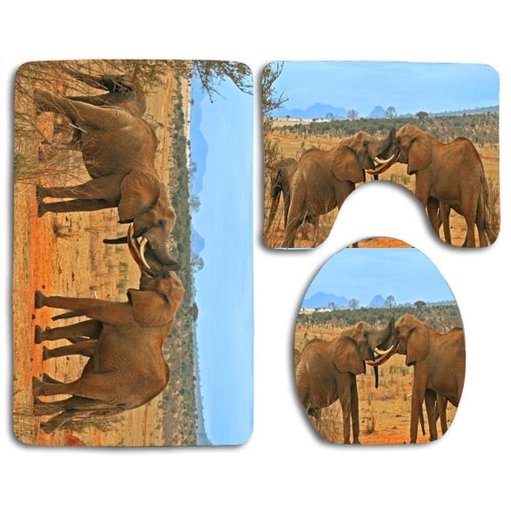 Hero image 0 of PUDMAD Elephants Fighting 3 Piece Bathroom Rugs Set Bath Rug Contour Mat and Toilet Lid Cover, 0 of 2