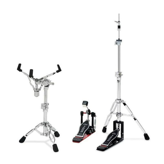 Part of DW's 5000 Series, the DWCP5000PK2 3-piece hardware pack includes the celebrated Accelerator series bass drum pedal, an easy-to-position, 2-leg rotating hi-hat stand and a memory lock-equipped snare drum stand. This is a gig-tough package for professional drummers that struts a lot of cool, player-friendly features, such as a two-way beater and a rubber-grip base (5000AD4), a fine-tooth tilter (5300) and a spring-release footboard (5500TD).