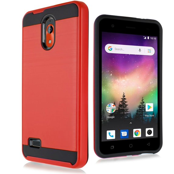Hero image 0 of for 5" COOLPAD ILLUMINA 3310 Brushed Metal Slip Resistant Dent Guard Hybrid Shield Layers Dual Layer Hard Back Slim Shockproof Bumper Armor Protective TPU PC Phone Case Red, 0 of 4