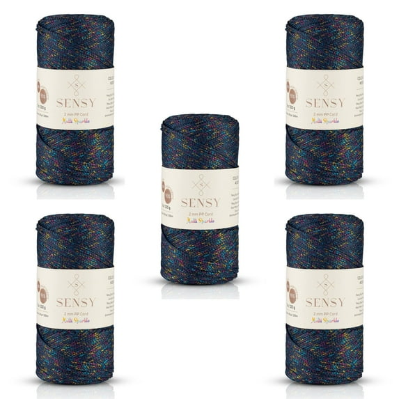 Hero image 0 of 5 Skeins of Sensy Premium 2mm 251 Yards Sparkle Polyester Rope 90% Polypropylene 10% Polyester Cord Macrame Cord 2mm Crochet Bag Cord Macrame Rope Crochet Thread for Knitter (Navy Blue Multi Sparkle), 0 of 5