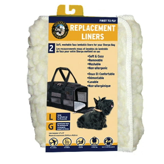 Soft and cozy Sherpa replacement liners for your Sherpa pet carrier are machine washable and have a waterproof bottom to prevent leaks. Sold in packs of two. Sherpa® Travel gives pet parents the best of all worlds: innovative products, stylish designs, environmental responsibility, and exceptional value with a variety of travel carriers, leads, mats, straps, to meet a pet's and pet parent's needs for travel. Sherpa® products are designed to meet child safety standards and are backed by our 100% satisfaction guarantee. If a customer is dissatisfied with a Sherpa product for any reason, we will replace or refund it.