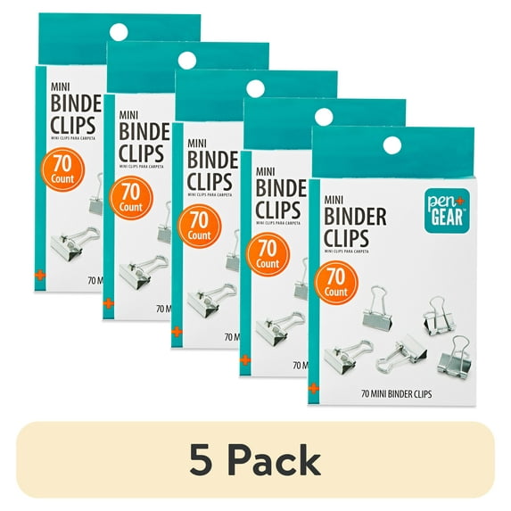 - 5-pack of Pen+Gear Mini Binder Clips, Silver, 70 Count