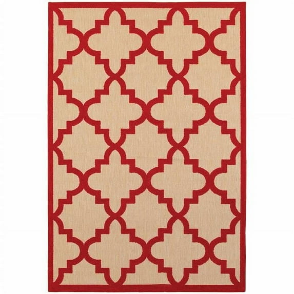 5 x 8 ft. Sand Geometric Stain Resistant Indoor & Outdoor Rectangle Area Rug - Red - 5 x 8 ft.
