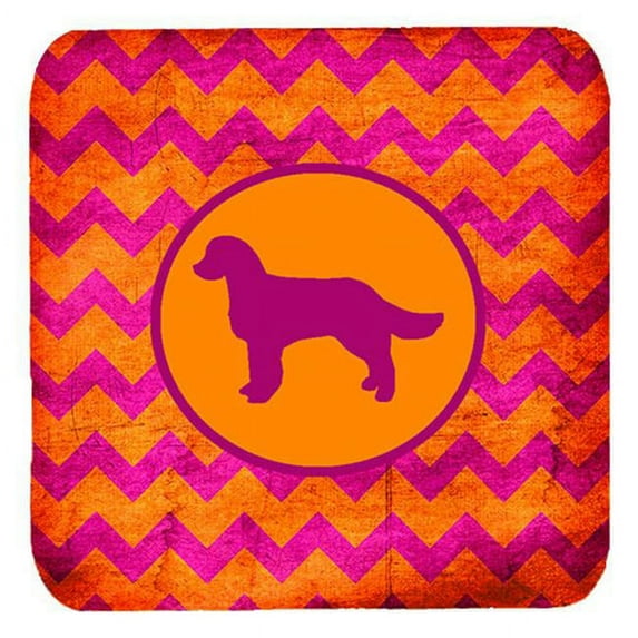 American Water Spaniel Chevron Pink And Orange Foam Coasters - Set 4, 3.5 x 3.5 In.