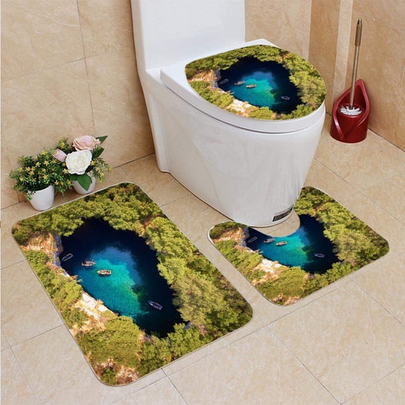 Hero image 0 of PUDMAD Melissani Cave Kefalonia 3 Piece Bathroom Rugs Set Bath Rug Contour Mat and Toilet Lid Cover, 0 of 2
