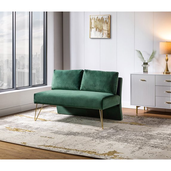 Whether you're adding a contemporary touch to your entertainment space or complementing the seating arrangement in the home, this chic loveseat will be the center of attention. The high-quality foam filling with a solid and manufactured wood frame provides comfort and support. Shown in a beautiful velvet upholstered fabric, this loveseat features a supported backrest, geometric metal legs, as well as removable back cushions, boasting an incomparable charm in your living spaces. Have no problems blending into your home decoration with unique characters and incredible durability. It's the perfect pick for bedroom, living room, and other scenes.