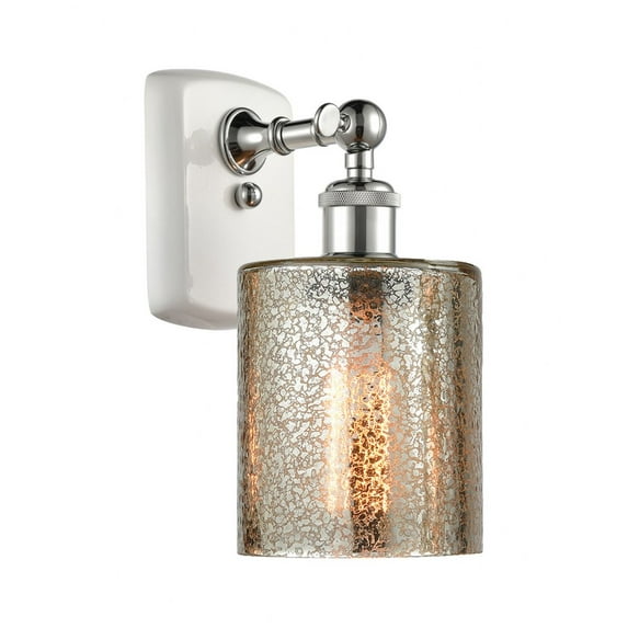 Innovations Lighting-516-1W-WPC-G116-Collection: Cobbleskill, Material: Glass, Finish Color: white/polished chrome, Width: 5", Height: 9", Length: 6.5", Backplate Width: 4.5", Backplate Length: 6", Lamping Type: Incandescent, Number Of Bulbs: 1, Wattage: 60 Watts, Cri: 99, Color Temperature: 2200 Kelvin, Lumens: 220, Dimmable: Yes, Moisture Rating: Damp Rated, Desc: A truly dynamic fixture, the Ballston fits seamlessly amidst most d�cor styles. Its sleek design and vast offering of finishes and shade options makes the Ballston an easy choice for all homes. Solid brass 180 degree adjustable swivels with internal teeth that lock in at 5 degree intervals / Fixture can be hung with bulbs facing up or down / 6 x 4.5 inch 2mm heavy cast backplate / Distance from outlet opening to top of fixture 3 inch / Rated for 100 watt maximum / UL/CUL and ETL/CETL damp rated / Compatible with incandescent, LED, fluorescent and halogen bulbs. ,-Cobbleskill - 1 Light Wall Sconce In Industrial Style-9 Inches Tall and 5 Inches Wide-White/Polished Chrome Finish-Mercury Glass Color