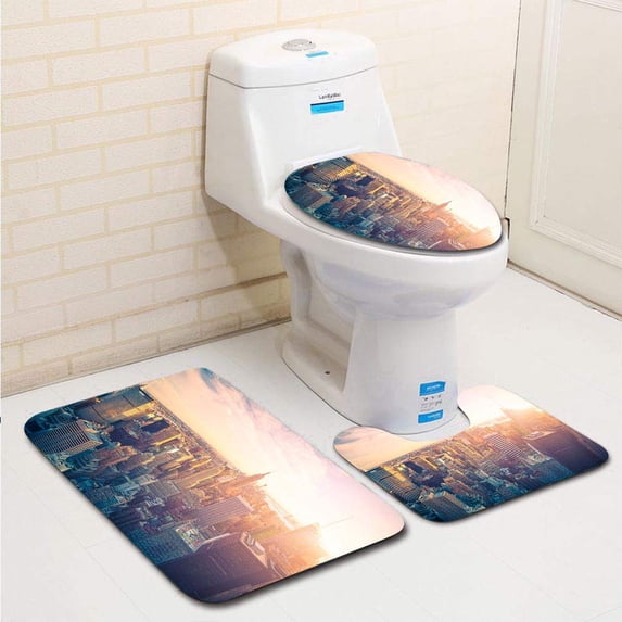 Hero image 0 of PUDMAD New York City Skyline at Sunset 3 Piece Bathroom Rugs Set Bath Rug Contour Mat and Toilet Lid Cover, 0 of 2