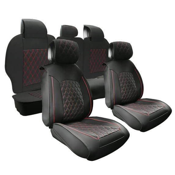 Hero image 0 of Car Front Rear Seat Covers Seat Protectors Pad for Chevrolet Silverado 1500 Black Red 5 Pcs Front Rear, 0 of 7