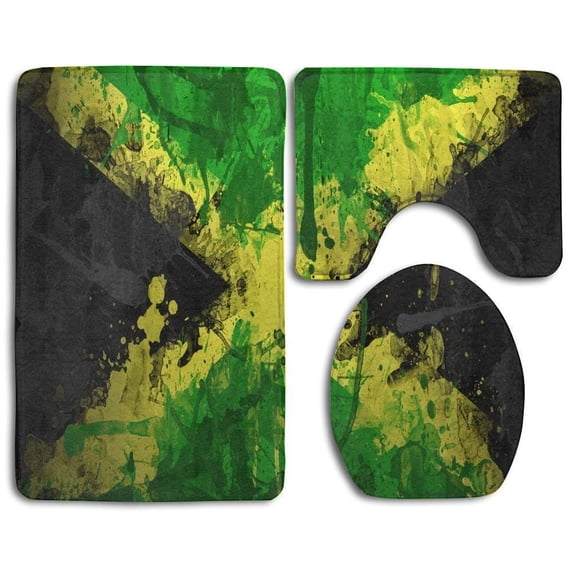 Hero image 0 of PUDMAD Splashing Jamaica Flag 3 Piece Bathroom Rugs Set Bath Rug Contour Mat and Toilet Lid Cover, 0 of 2