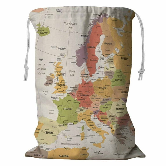 Hero image 0 of PKQWTM Europe Map Storage Basket Laundry Bag with Drawstring Size 18x24 Inch, 0 of 3